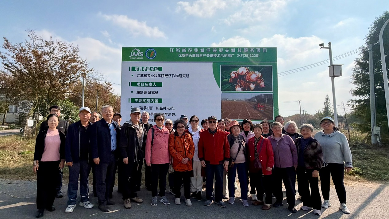 为丰富退休职工生活,发挥农科老专家余热,指导靖江香沙芋产业持续健康发展,2025年11月5日,经作所第三党支部联合所工会,在靖江举办“老专家产业服务行”活动。经作所退休党员职工、工会委员、第三党支部党员代表近30人参加活动。