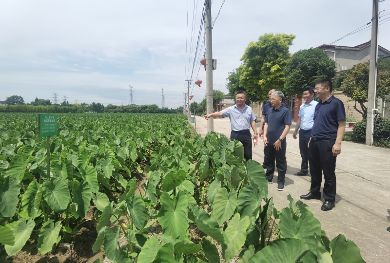 揭牌仪式结束后,孙洪武和我院成果转化处处长顾军一行来到亚夫科技服务项目“靖江香沙芋优质高效种植技术集成与示范推广”研究基地考察指导,现场查看了靖江香沙芋株系鉴定、脱毒种芋示范及芋头品种筛选等试验示范内容。