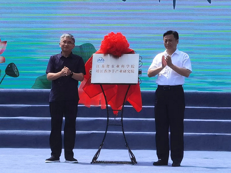 6月28日上午,江苏省农业科学院靖江香沙芋产业研究院在“2023‘苏韵乡情’乡村休闲旅游农业(靖江)专场推介暨靖江(生祠)第七届荷花节”上正式揭牌成立。我院副院长、党委委员孙洪武参加活动,并与靖江市委副书记、市长申强共同为“江苏省农业科学院靖江香沙芋产业研究院”揭牌。