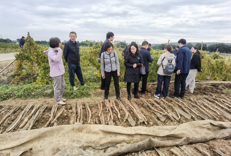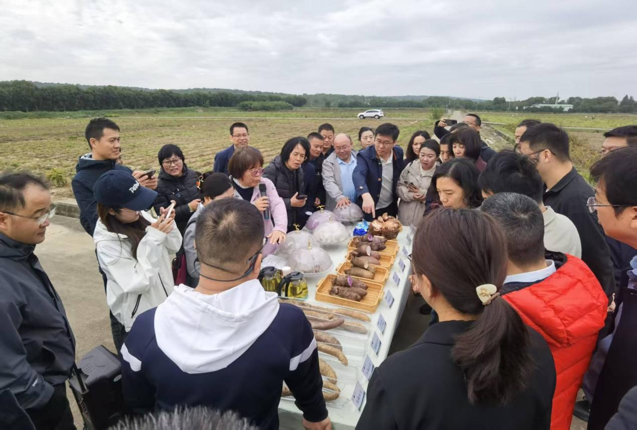与会专家还在我院六合试验基地现场观摩了山药、百合、菊花、蒲公英等中药材试验示范情况,现场体验了山药定向槽种植技术采收,品鉴了苏蓣系列山药和白香菊等新品种鲜食产品和加工产品。专家们对山药苏北综合试验站研发的山药、菊花等新品种新技术表示肯定。