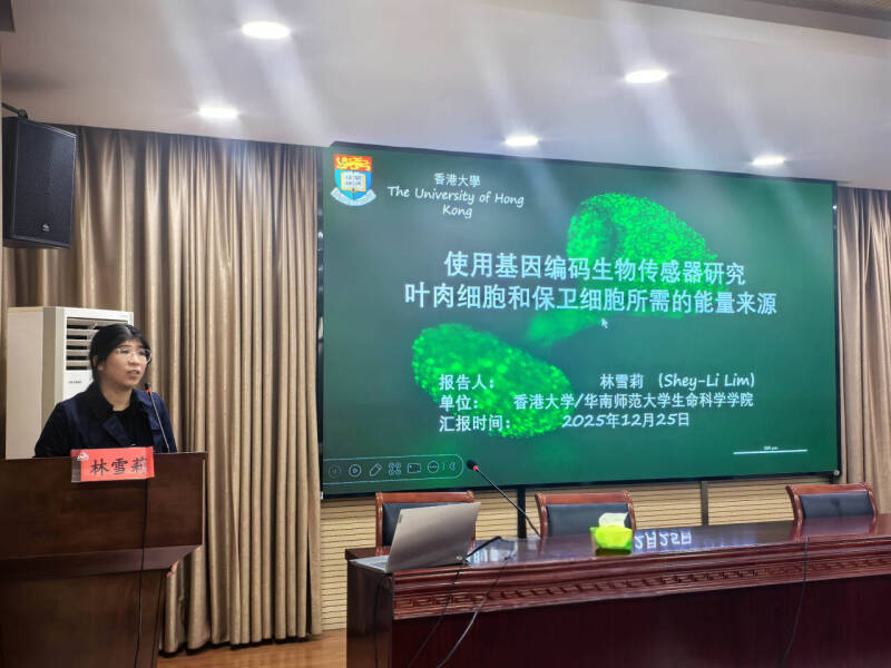 随后,林雪莉教授作了题为“使用基因编码生物传感器研究叶肉细胞和保卫细胞所需的能量来源”的学术报告。她系统介绍了团队自主创制的荧光蛋白传感器体系,该体系可对细胞内 NADH和 NADPH水平进行实时、动态监测。基于该技术,林雪莉教授重点回答了两个关键科学问题:一是阐明了叶肉细胞线粒体在白天通过光呼吸途径获取 NADH的能量来源机制;二是揭示了保卫细胞在气孔开闭过程中可从邻近叶肉细胞获得所需能量的生理新模式。相关研究为理解植物细胞间能量分配与协同调控提供了新的视角。在交流讨论环节,与会科技人员围绕植物免疫调控、病原效应因子功能解析、细胞代谢与能量信号传导等问题与两位专家进行了深入交流,现场学术氛围浓厚。